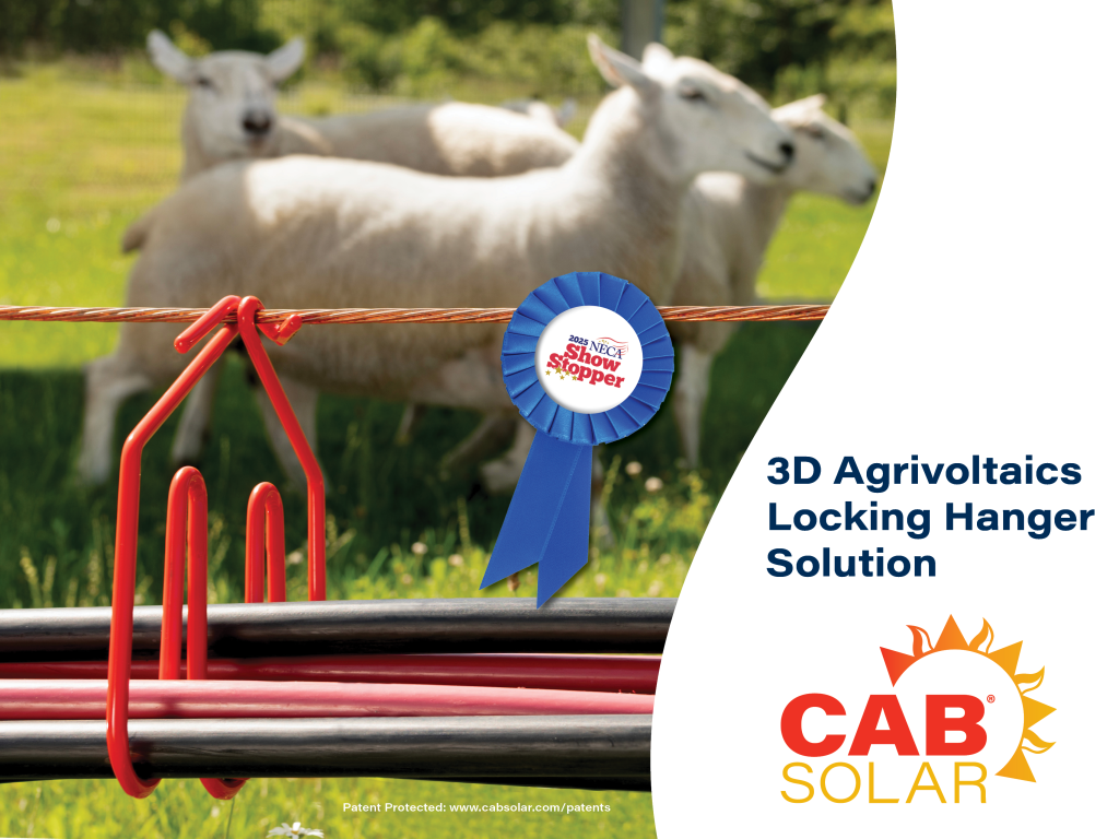Twenty-five winners of the 2025 NECA Showstopper Awards were announced on Saturday, September 13, at NECA 2025 Chicago. CAB Solar’s 3D Agrivoltaics Locking Hanger Solution earned one of these coveted awards.